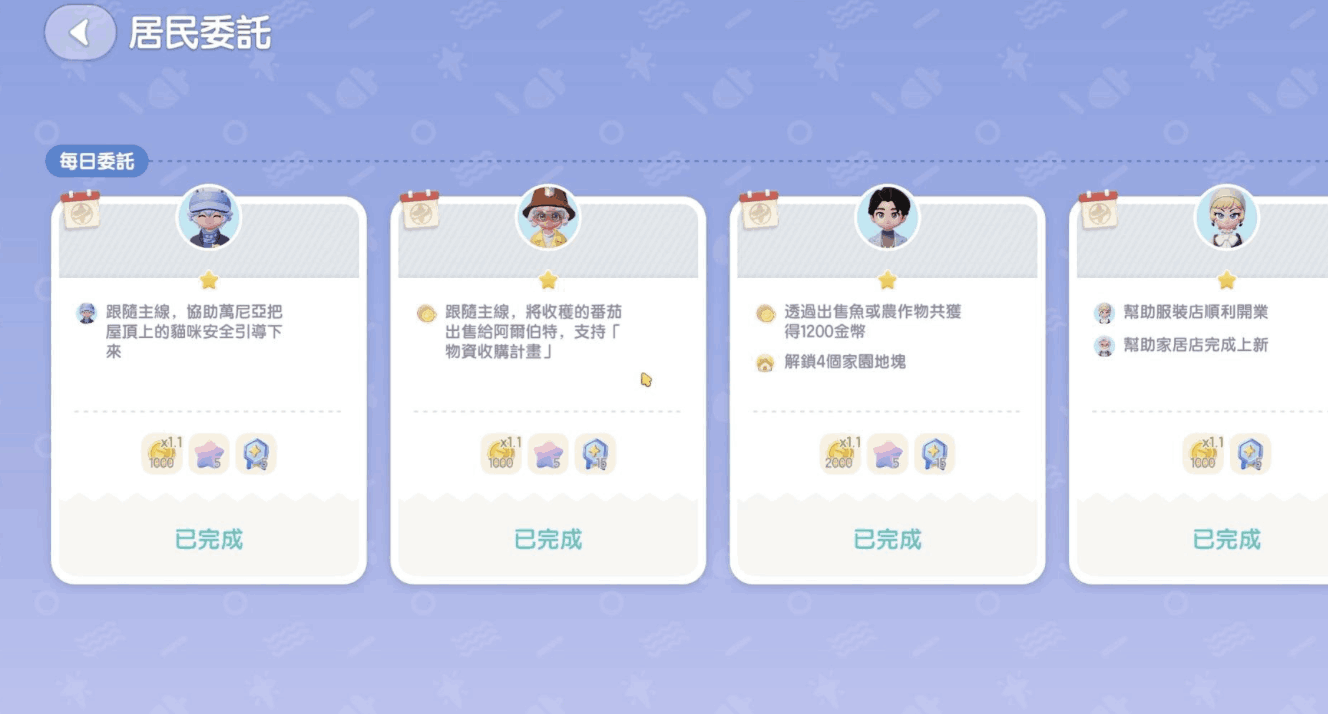 - 每日任務(共 5 個):這是經驗值的主要來源,解鎖後請務必當天做完。